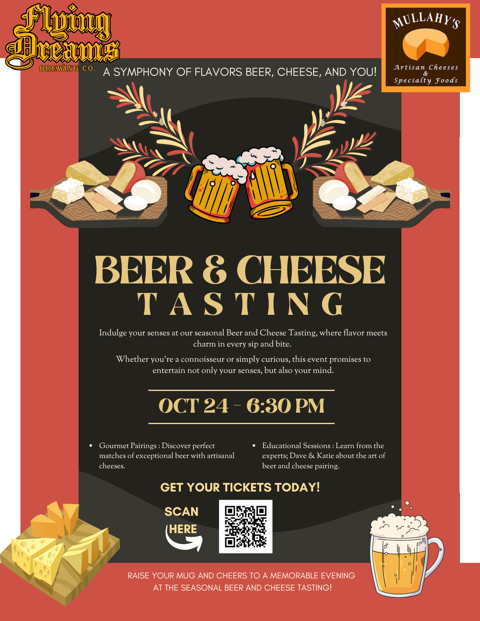 Katie from Mullahy’s and Dave from Flying Dreams Brewing are together for a fun night of beer & cheese tasting along with some education about the products.