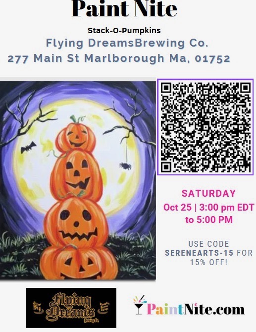 Paint Nite: Stack-O-Pumpkins Title: Halloween Ghost Party – Stack-O-Pumpkins Painting at Flying Dreams Brewing Co. Description: Join SereneArtsNCrafts for a spooky-fun painting session